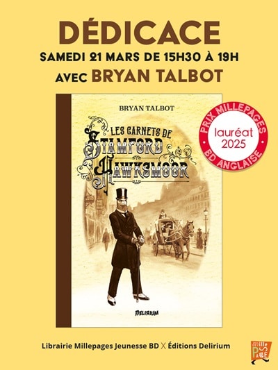 La remise du prix MILLEPAGE BD 2025 remporté par Les Carnets de Stamford Hawksmoor, qui aura lieu au sein de la célèbre librairie de Vincennes le 21 Mars prochain, était une belle occasion de vous permettre de rencontrer Bryan Talbot et d’organiser pour vous une mini-tournée de dédicaces à Paris !